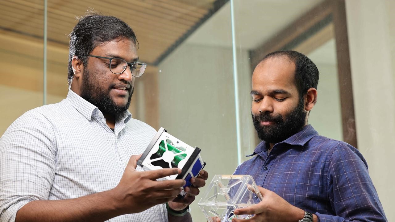 ResearchSat founder and chief executive officer Raviteja Duggineni with chief technology officer Jibin Jeffrey Dhanaraj. Picture: Russell Millard