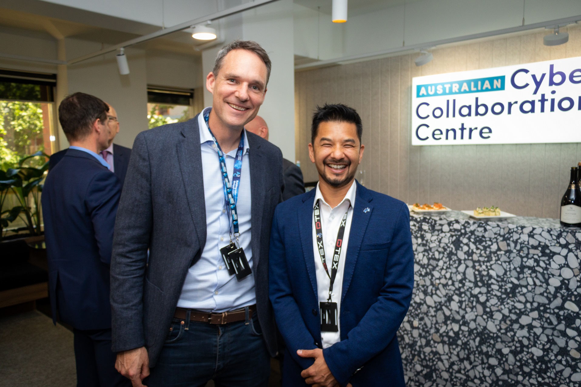 Mohan Koo, Chief Technology Officer and co-founder of DTEX Systems and Hugh Rutherford, Regional Sales Manager at Splunk set up offices at the Australian Cyber Collaboration Centre in 2020.