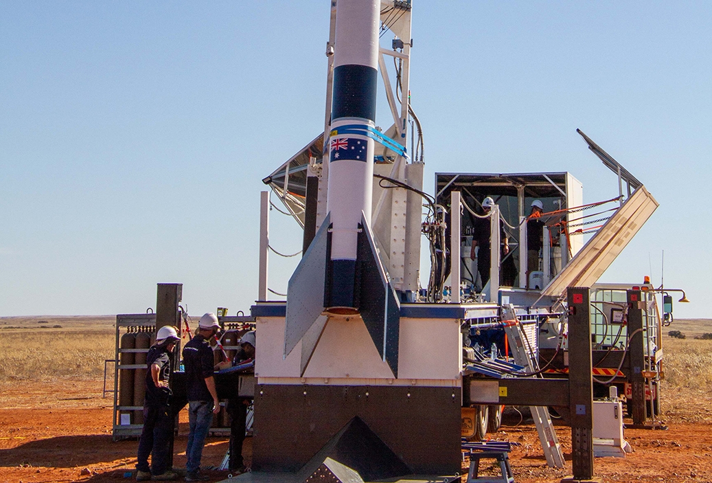 The test launch of a rocket built by Gilmour Space.