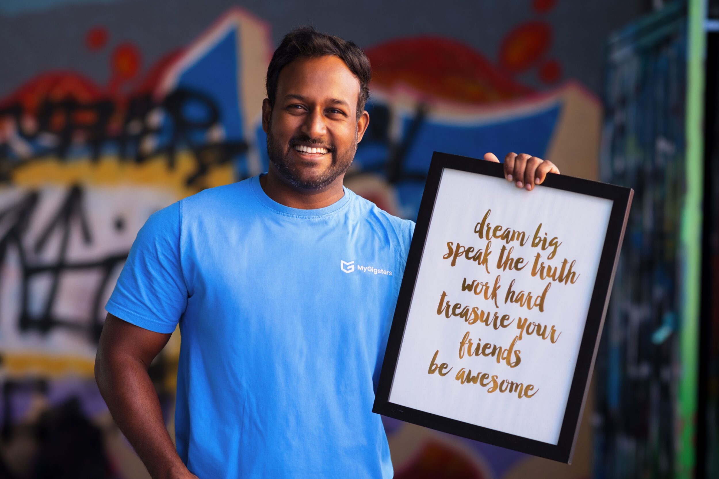“Dream big, speak the truth, work hard, treasure your friends and be awesome,” the 35-year-old founder of Lot Fourteen based MyGigsters says reading from the poster during a chat with Boundless.