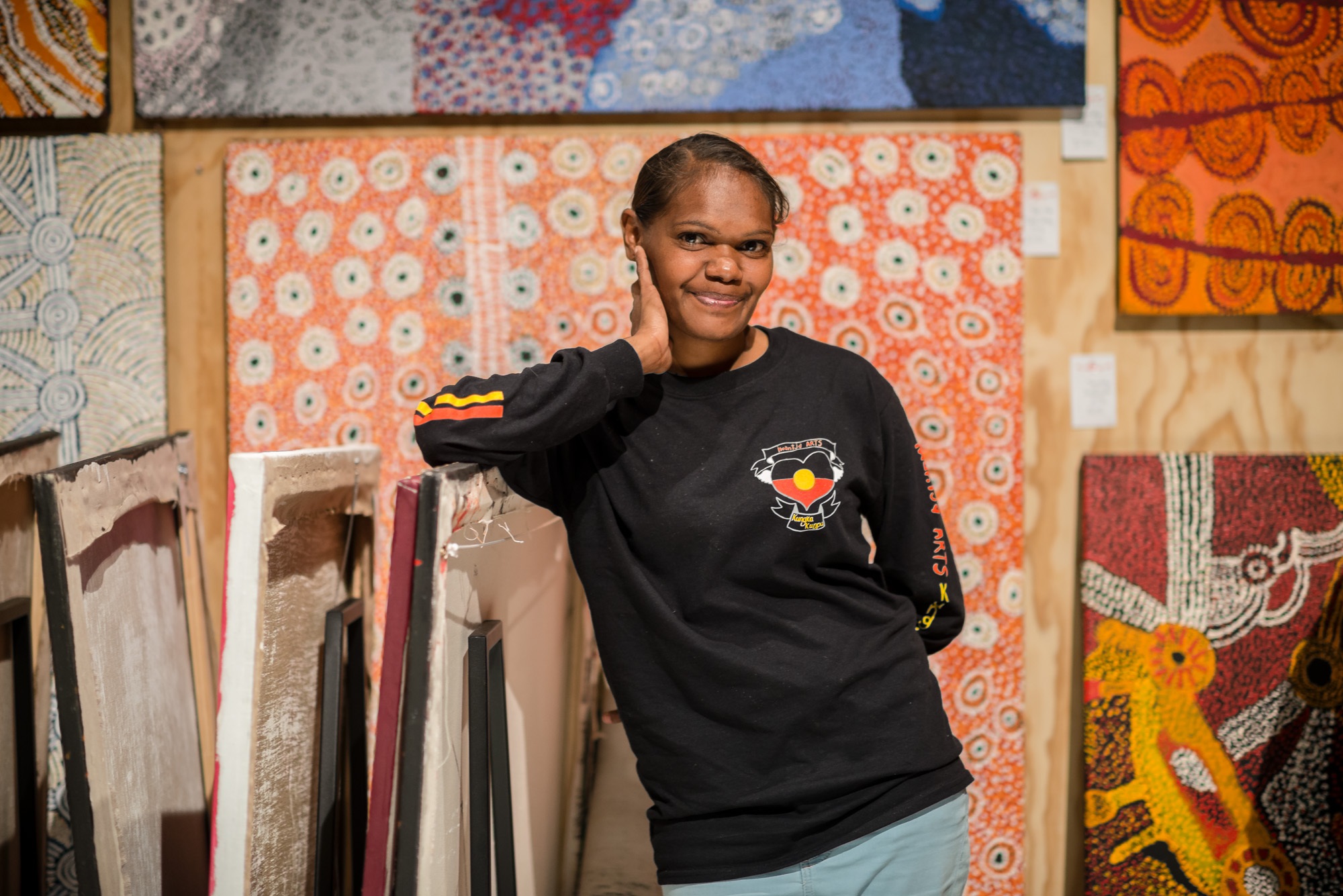 Leonie Cullinan from Iwantja Arts, Tarnanthi 2019 Art Fair (photo: Nat Rogers)