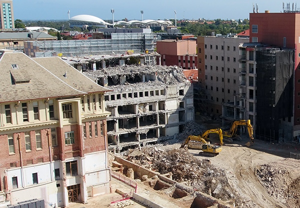 The rapid development of Lot Fourteen is continuing, with more obsolete former hospital buildings demolished as part of the site’s transformation into a world class innovation and ideas precinct.