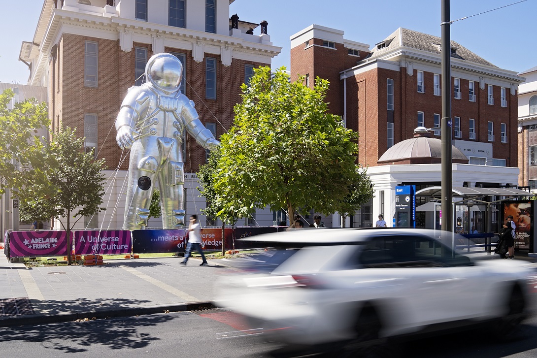 Astro is standing proud and ready for selfies at Lot Fourteen in the Adelaide CBD for the duration of the Fringe Festival (17 February â 19 March), promising to be a real showstopper as thousands of people disembark the tram and head towards the Fringe hub.