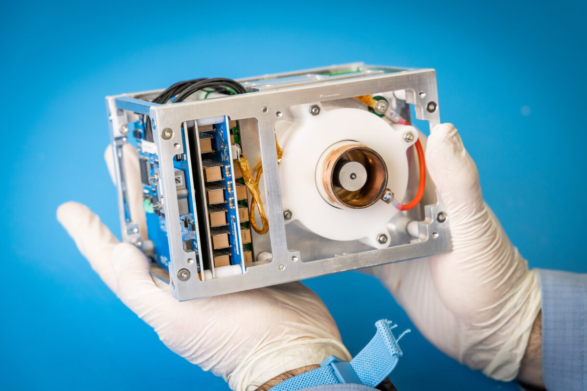 This month, SpIRIT was able to demonstrate charging of the Neumann Drive®’s power capacitors by the nanosatellite’s solar panels and batteries, and conduct several test firings, successfully demonstrating the ability to use Molybdenum as a solid metallic propellant.