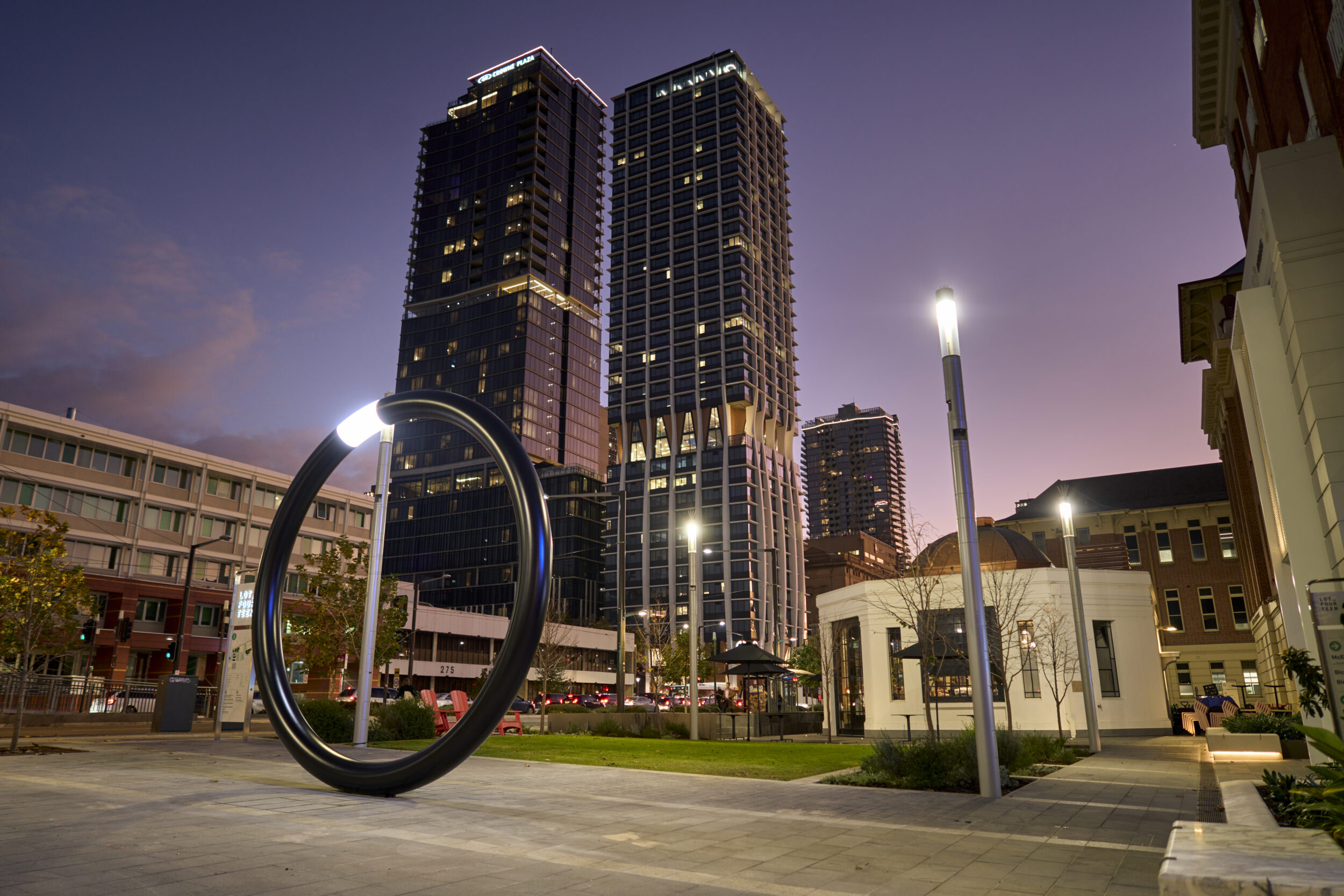 A major new artwork has been installed at Lot Fourteen, on North Terrace, which is one of several public art commissions for the innovation district, it was announced today.