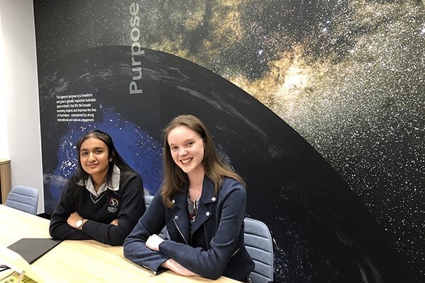 Students Jasreen Kaur and Georgia Dallimore took part in last year’s Space Industry Work Experience Program and are pictured here at the Australian Space Agency at Lot Fourteen.
